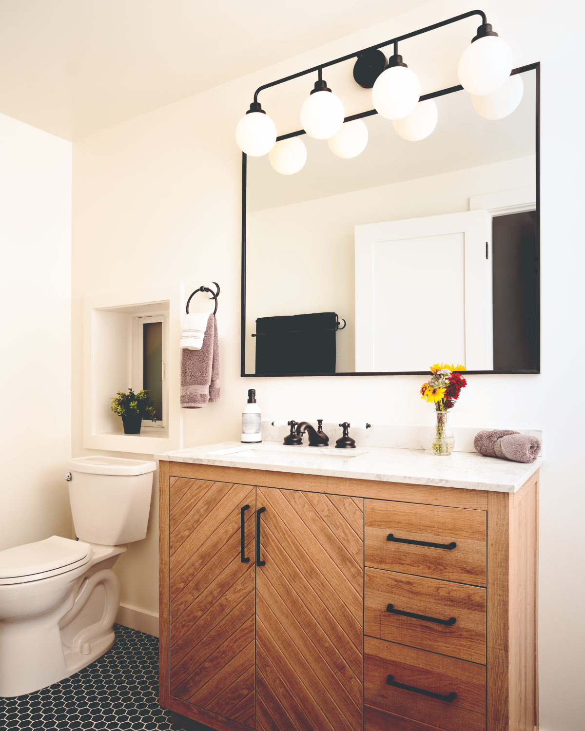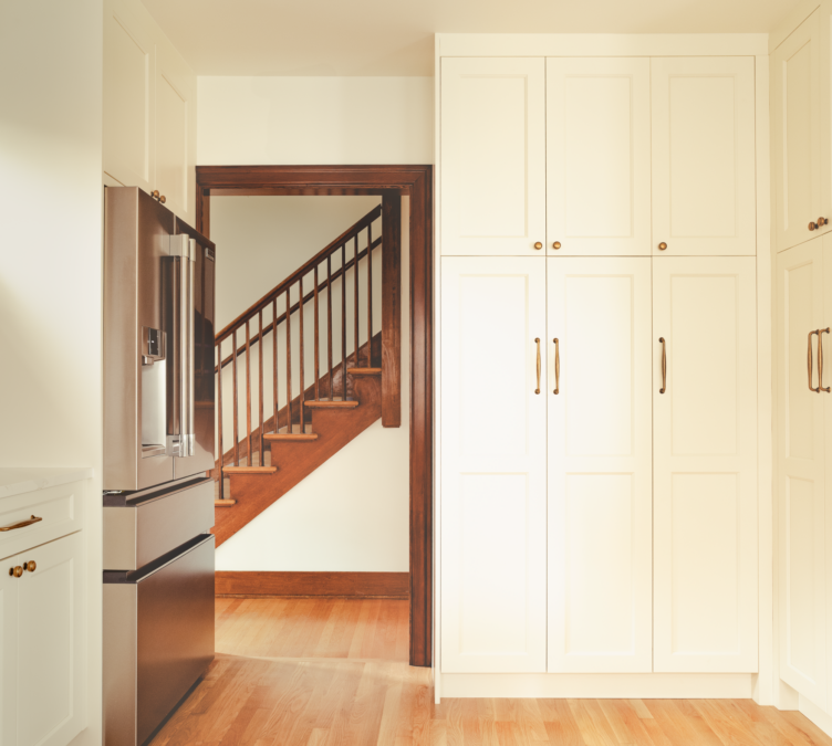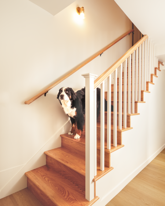 Working closely with Hinge Studio, the homeowners reimagined their home without adding square footage – just smarter use of what they already had. The basement was finished to include a comfortable guest bathroom and functional laundry area, with a redesigned stair improving both code compliance and connection to the garage.
