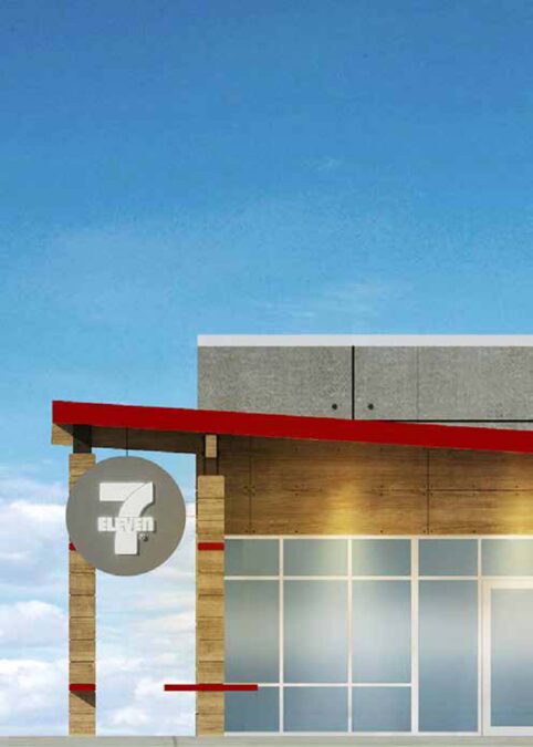 Initial design concepts for the Phillips 66 gas and convenience store speak to the nostalgic roots of the midwestern dry goods store, where one might have gone to casually run into neighbors and friends. In collaboration with VBP Orange, Hinge Studio developed two main concepts of the gas station as a Hub and as a Front Porch. The use of clean geometries in warm, simple materials like wood and board-formed concrete embodies the character of a comfortable yet modern reimagination of these two unbuilt design approaches.