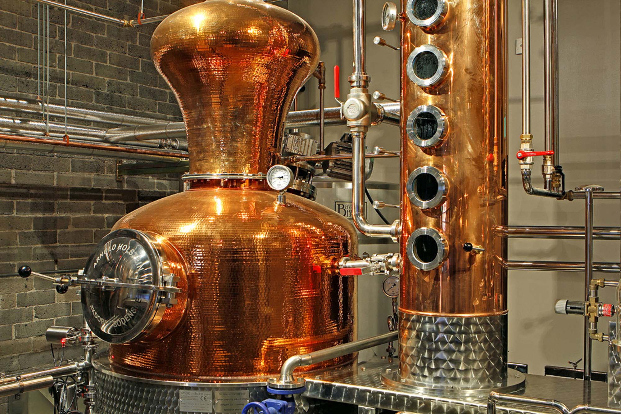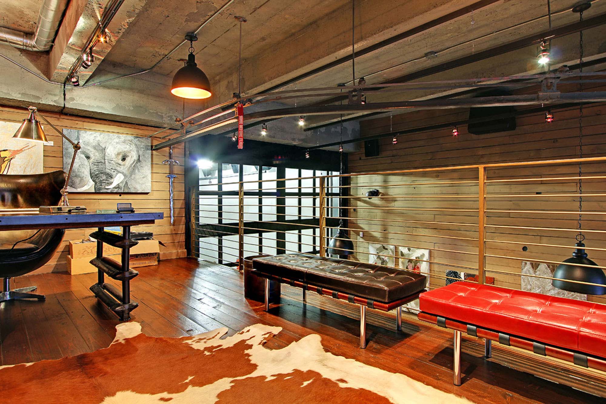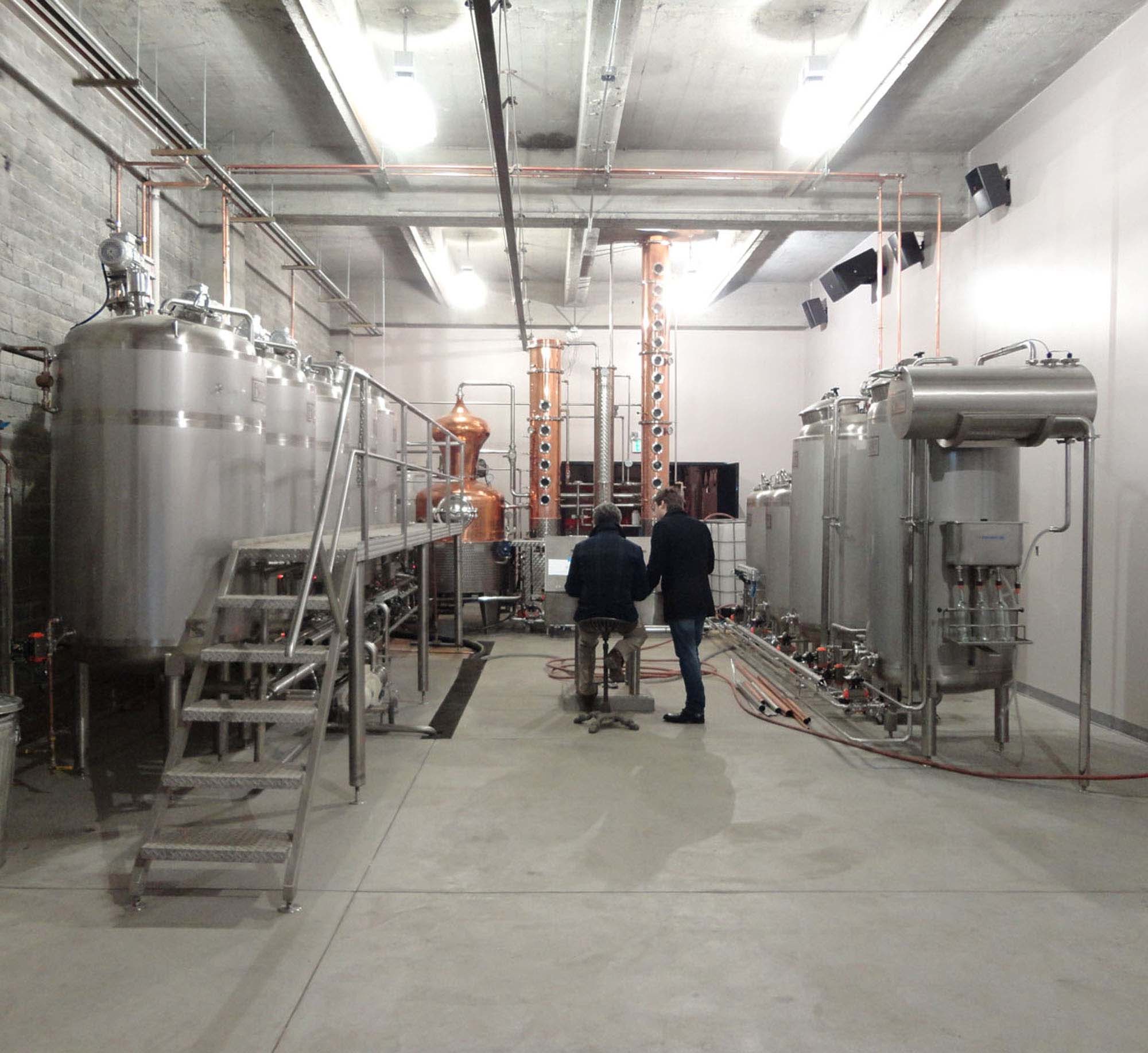 Hinge Studio collaborated closely with the owner of this new craft distillery to create a space that marries industry with art. The project capitalizes on the raw beauty of the 1920’s concrete-framed building in the SODO neighborhood of Seattle. By introducing steel and reclaimed elements found during demolition, the tasting room is embodied with a welcoming warmth. Full-height reclaimed wood walls serve as a canvas for the owner’s art collection. A beautifully patinaed wood and glass door salvaged from the original truck entrance of the building creates a full wall of glass, giving visitors a view of the impressive copper and stainless steel still in the distillation room. A steel and wood mezzanine was inserted into the tasting room space to house required restrooms and to provide the owner with an office space. An artful steel ships ladder provides access to the office and offers opportunities for display of product.
