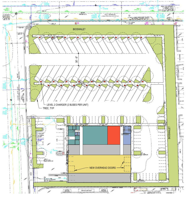 The project included assessing an existing 23,000 sf industrial building and 3.5 acre site for multiple uses. Hinge provided land use and building code assessment as well as performing a facility and site assessment. These assessments quantified the work the school district would need to perform to bring the building and site up to current standards for utilizing the site on the short term for office and storage, with a long term goal of housing, charging and maintaining a fleet of electric busses As the prime consultant and architect for this facility assessment and feasibility study, Hinge Studio coordinated and synthesized information from Mechanical, Electrical, Plumbing, Fire, Civil, Structural, Geotechnical, and Environmental consultants. The end report provided the school district with two diagrammatic plans and a summary of the feasibility and cost associated with the new uses.