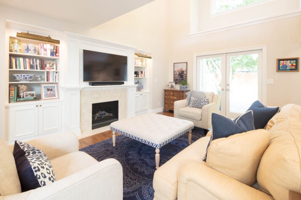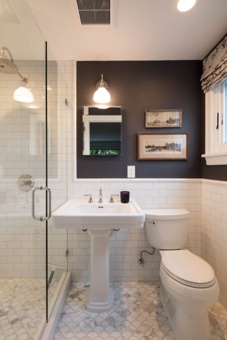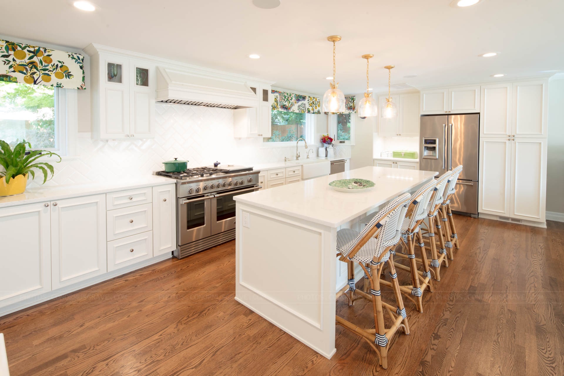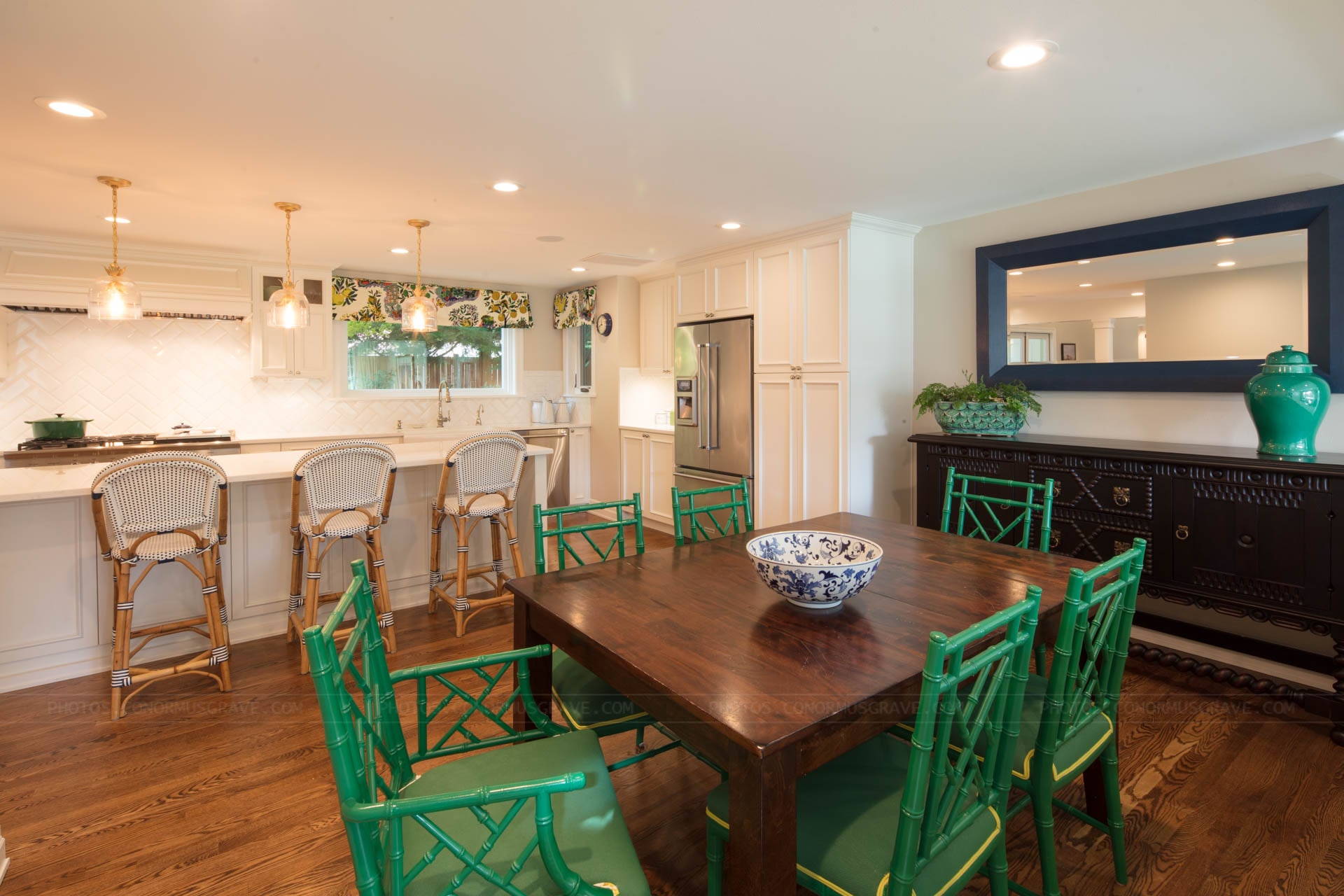 By removing the oversized 1950s chimney and relocating the utility room, Hinge was able to open up the floor plan of this home. The resulting space is open airy and works much better for this fun fast moving family. Traditional detailing in the form of columns and built ins bring character and quality into the home. The house is filled with fun nooks and crannies from an attic office space and a kids club house both nestled in the eaves and taking advantage of former underused lofted ceilings to a sound isolated drum room accessed by a ship ladder stair tucked behind a book shelf.