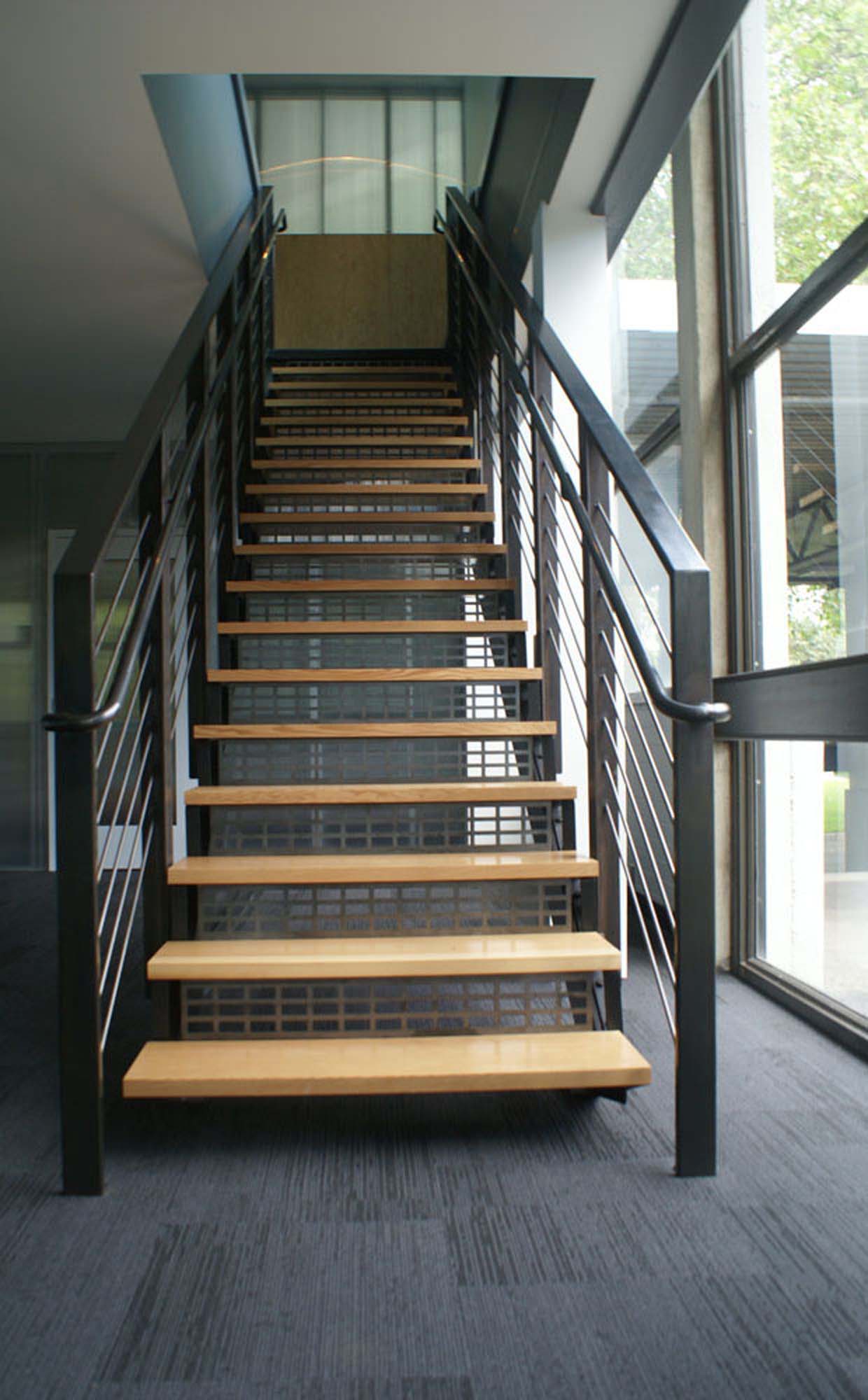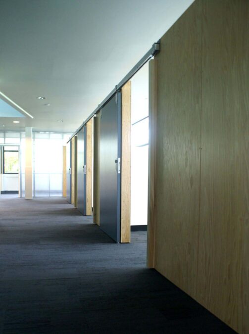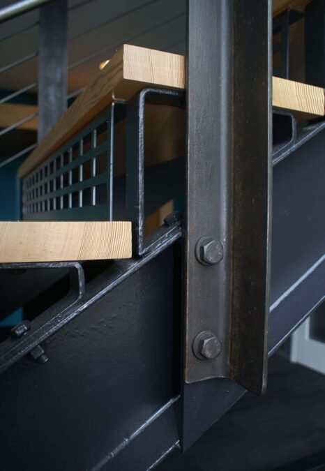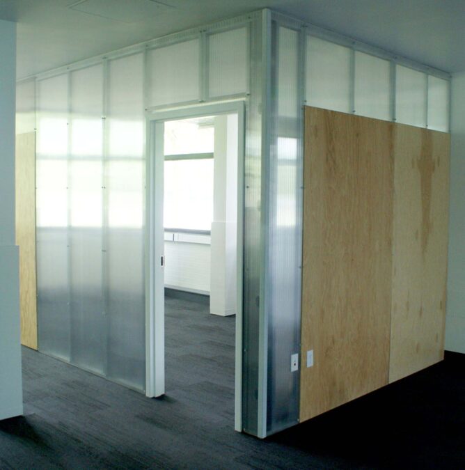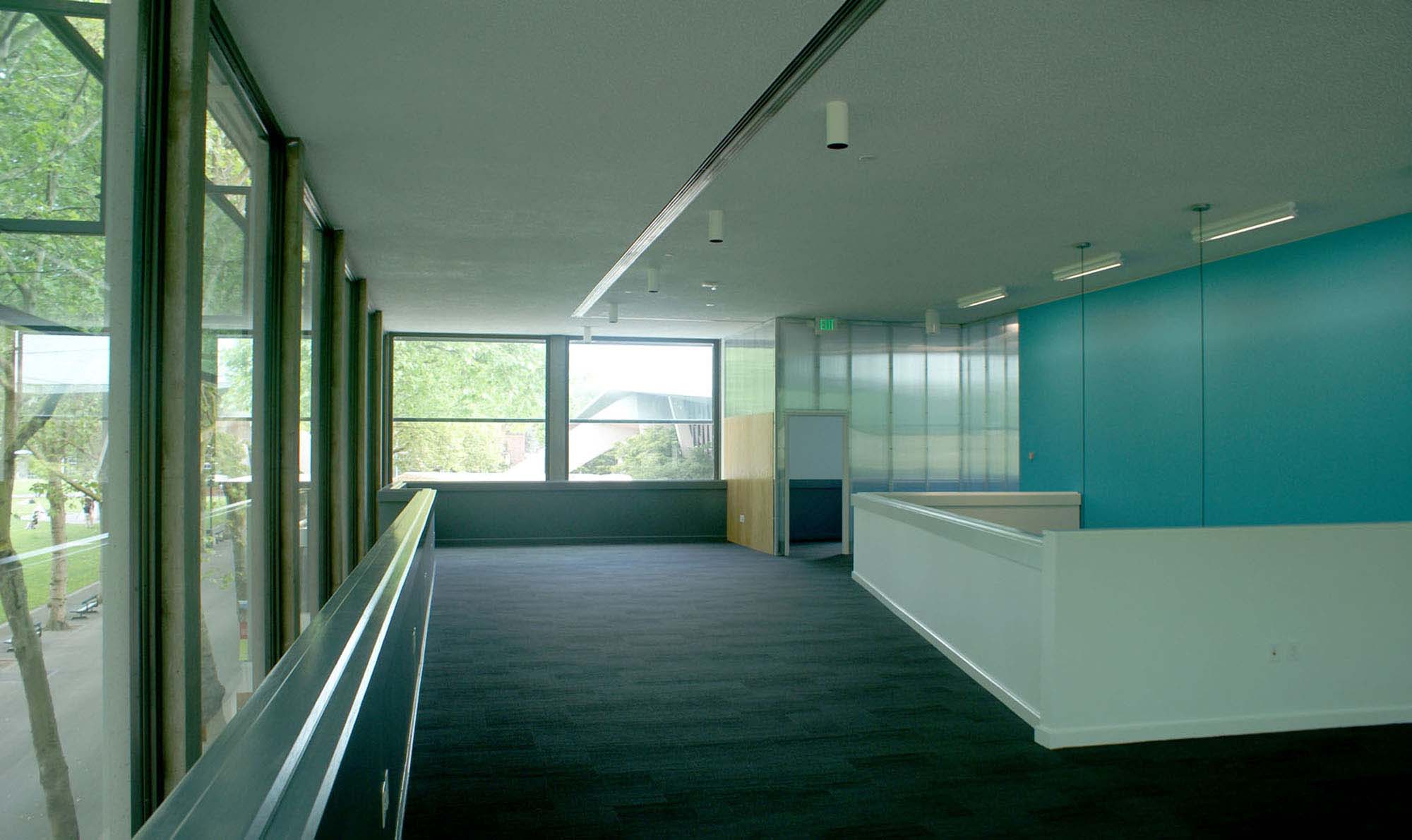 Seattle International Film Festival’s new home and year-round venue is housed in one of Paul Thiry’s original buildings from the 1962 World’s Fair at Seattle Center. The challenge of this project was to insert a 100 seat theater, classroom, archives, and offices into the existing building without loosing the glassy airy quality of the mid-century modern structure. The design pulls the theater to the center of the structure keeping the perimeter as open as possible. Where enclosed office were required, over-sized sliding doors and translucent plastic walls allow as much light as possible to enter the center of the space. The project utilized a simple material palette of plywood, polycarbonate, color and light to create a simple, fresh space that reflects the character of the organization without stretching the budget. The original 1962 stair was uncovered from beneath drywall and trim and returned to it’s former glory. The 110 seat theater has a state of the art digital and analog projection booth and reclaimed seats from the Cinerama. The 10,000 sf public/private project was fast-tracked and completed in 5 months, on-time and on-budget. Kate Cudney, Hinge Studio Founder, was the project architect while at Owen Richards Architects.